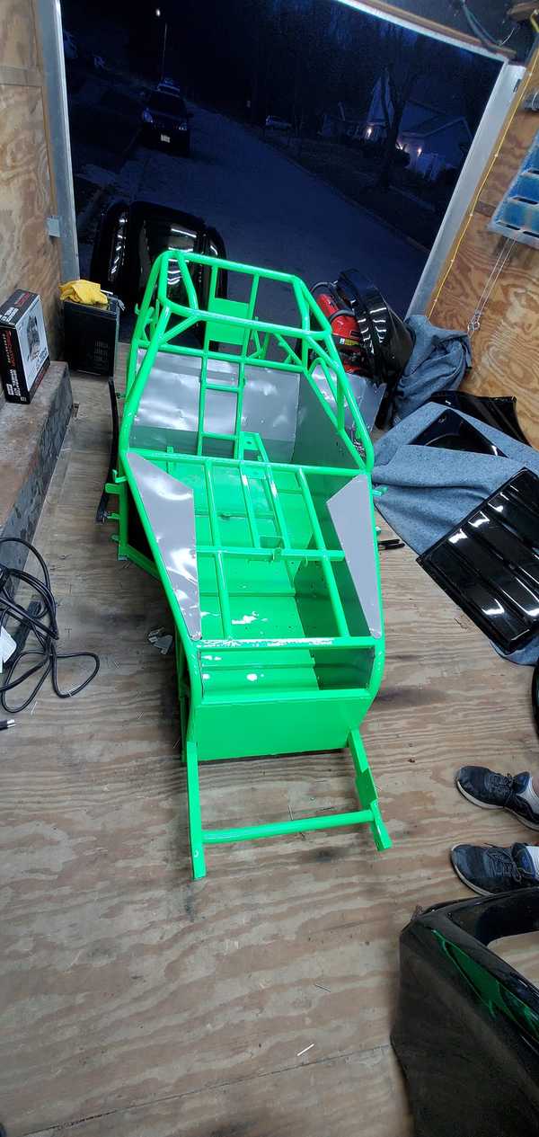 Exciting news!! The car has been started being put back together!! Everything is officially painted and powered coated. Body panels were hung to be fitted and cut to size. Now Everything can be put back on to be taken and get lettered!